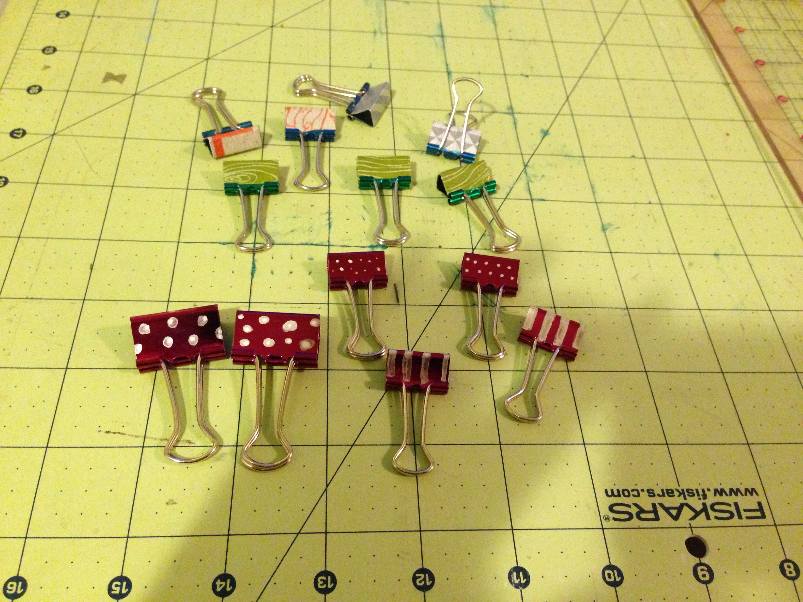 I tried 2 different ways to achieve this look. The first I covered the clips in washi tape and the second I just drew on them with a paint pen. The results, not quite anthro, but if I had used either A. Different washi or B. A stencil with the paint pen then I could have made a perfect replica.